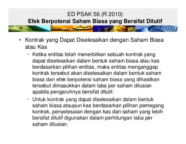 Laba per saham ed psak no. Pernyataan ini tidak wajib diterapkan untuk unsur yang tidak material. Sekuritas dilutif dan laba per saham february 24 2015 bab 16 intermediate 2.