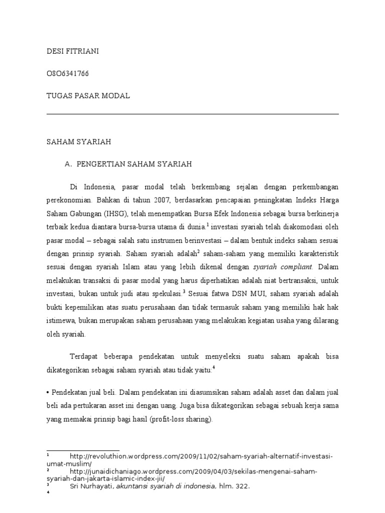 Studi Ekonomi MAKALAH SAHAM SYARIAH